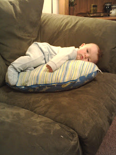 Oh what a "Big boy" you are Conner!! Did mommy & Daddy start you on ceral after your doctor's appointment? How do you like it?? I bet Mommy has to keep wiping it off your face and putting it back into your mouth...huh?? Your tongue keeps pushing it out, doesn't it?? Not that you don't like it, but because you have to learn this new way of eating....different from snacking on mommy...huh?